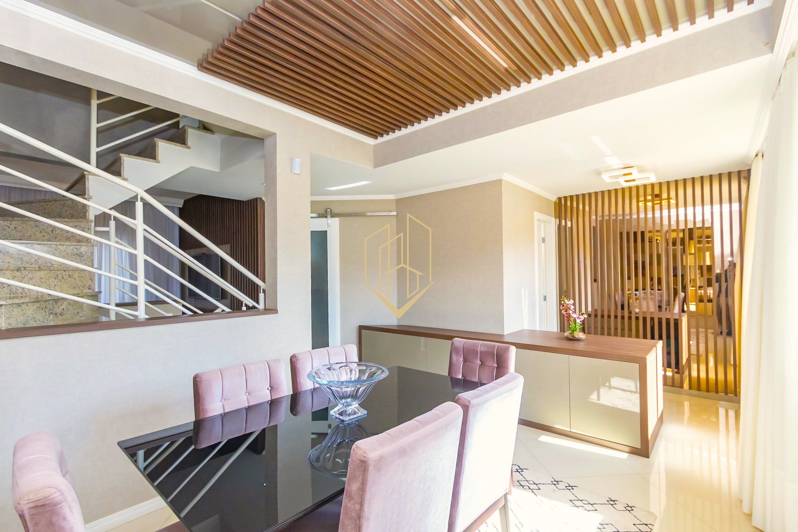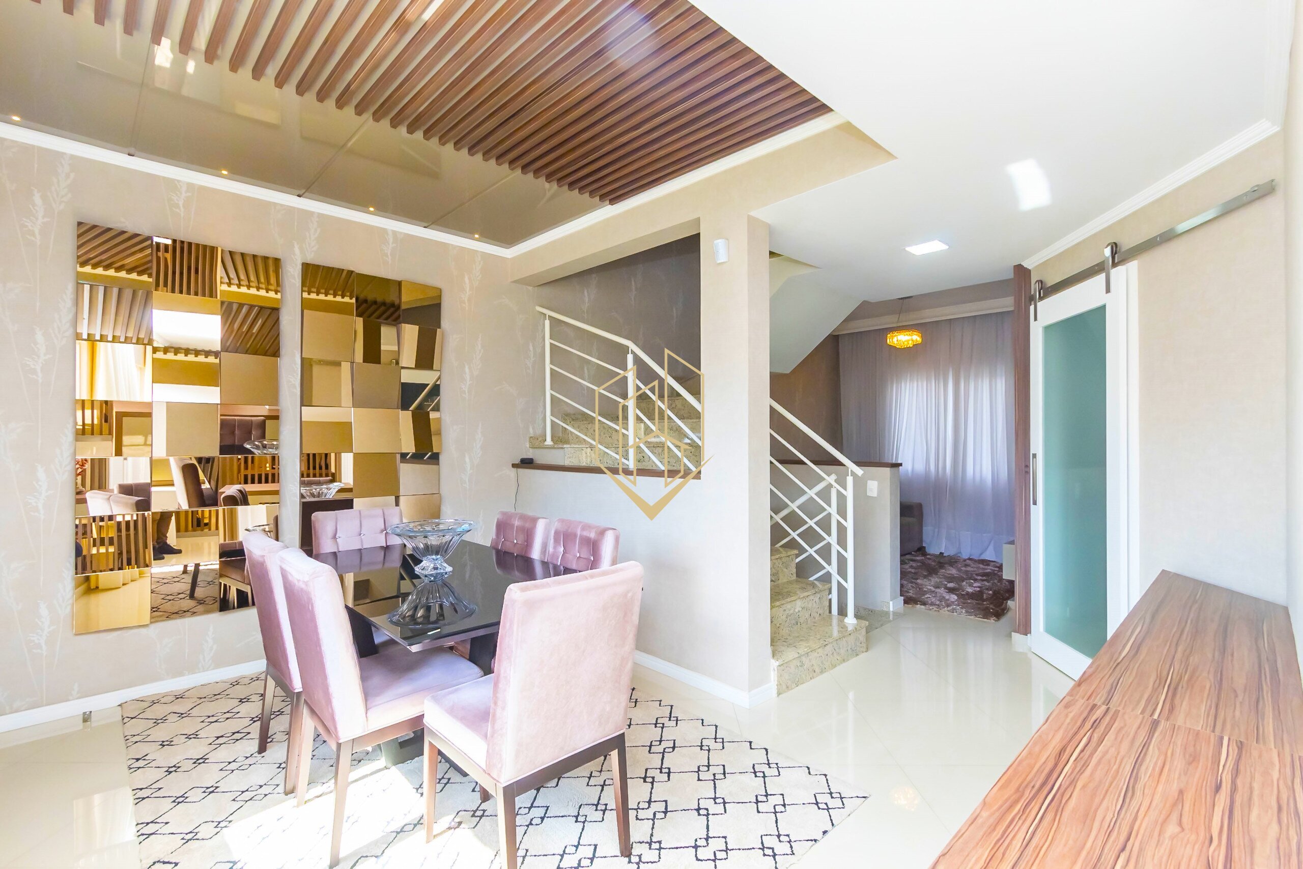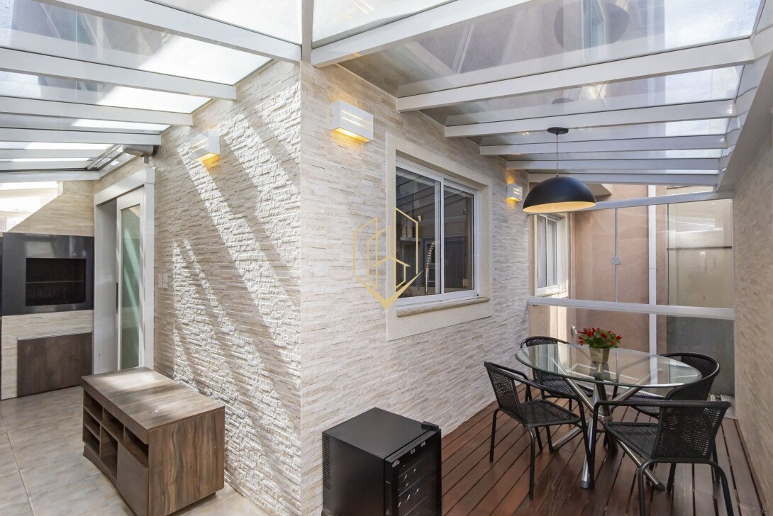 O segundo pavimento dispõe de sala de estar, sala de jantar, lavabo, cozinha independente e espaço gourmet com teto retrátil.