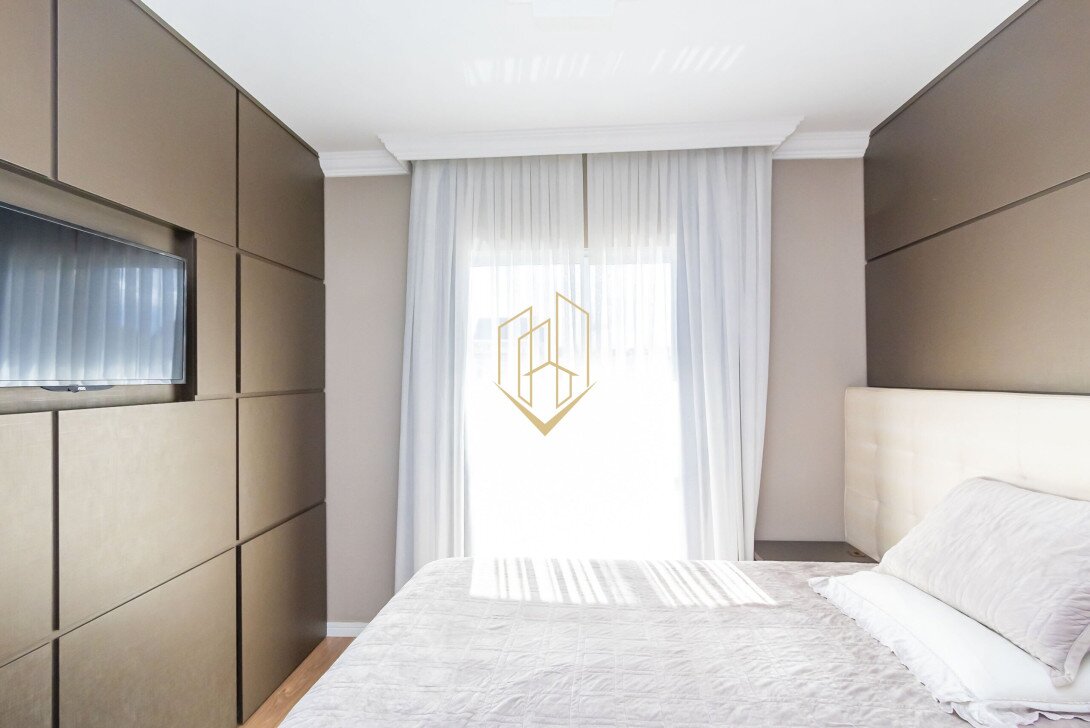 Contendo 188,97 m² de área privativa, distribuídos em quatro pavimentos, face oeste com ótima insolação e ventilação natural, móveis planejados em todos os ambientes, piso porcelanato na sala, cozinha e espaço gourmet, piso laminado nos dormitórios e ático, teto com sancas em gesso, fachada com pintura em grafiato e portão eletrônico.