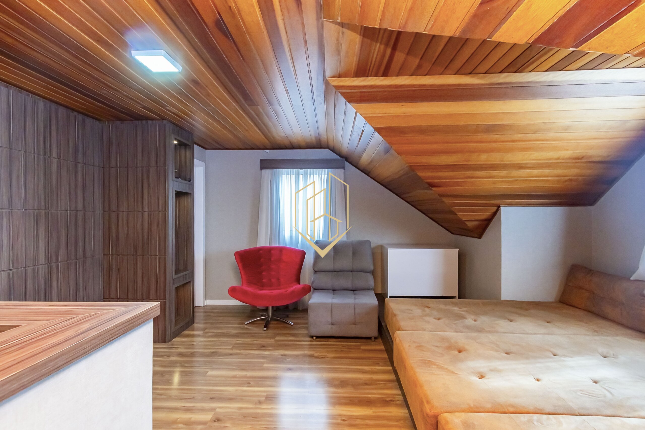 No ático tem uma excelente sala de tv com escritório e um lavabo.