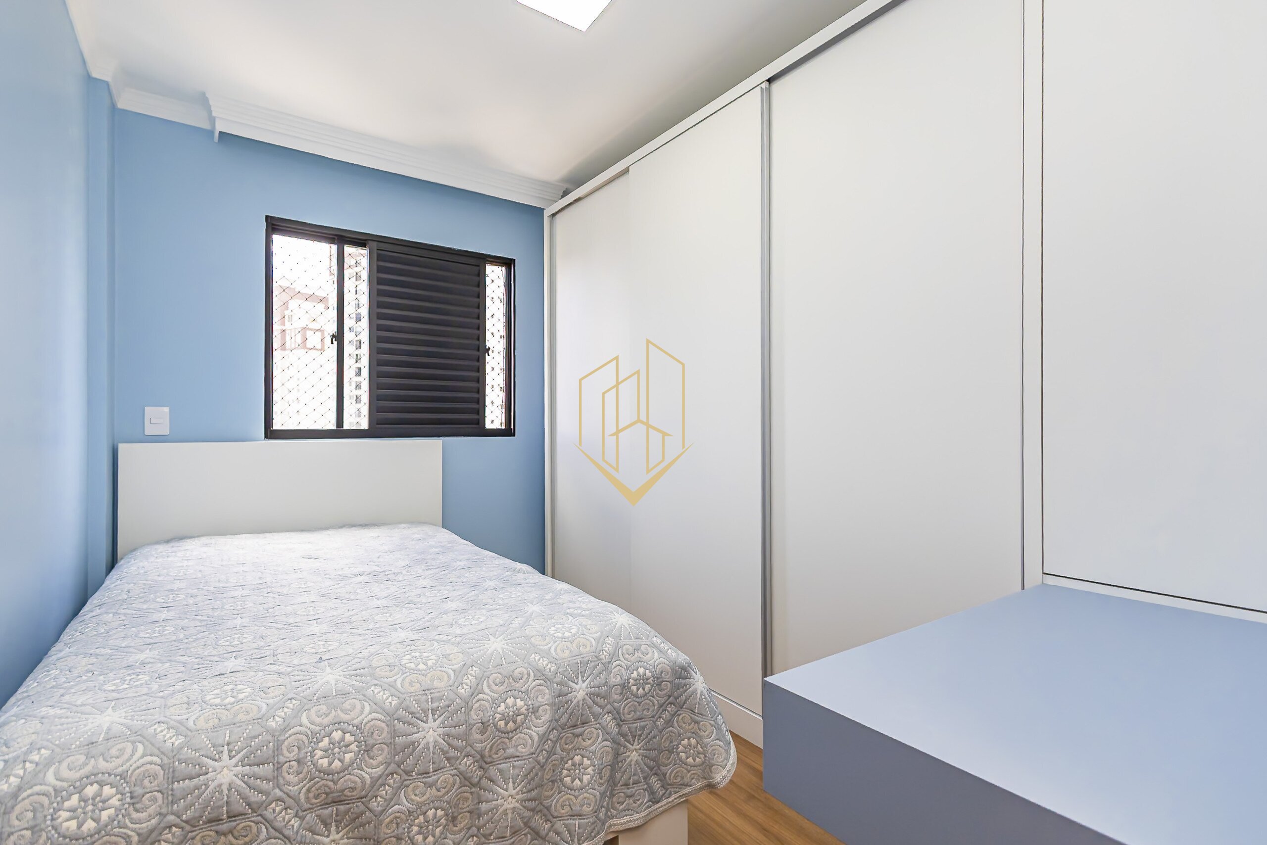 O apartamento possui 111m² e está localizado no 13° andar, muito bem arejado e iluminado, com 2 entradas independentes. O imóvel é composto de 3 quartos, sendo 1 suíte com closet, todos com armários, possui ainda 2 banheiros com armários e box blindex, cozinha independente com marcenaria alto padrão e tampo em silestone, sala de estar e sala de jantar integradas, 2 sacadas fechadas, 1 delas com churrasqueira à carvão e pia de apoio, lavanderia independente com armários, um pequeno cômodo que hj é dispensa/depósito e 2 vagas fixas de garagem. O apartamento é inteiro reformado e possui aquecimento à gás nas torneiras e chuveiros e todas as janelas e sacadas são teladas. O condomínio ainda conta com portaria remota, playgroud, sistema de câmeras e interfone, 2 elevadores, espaçoso salão de festas, playgroud e quadra poliesportiva.