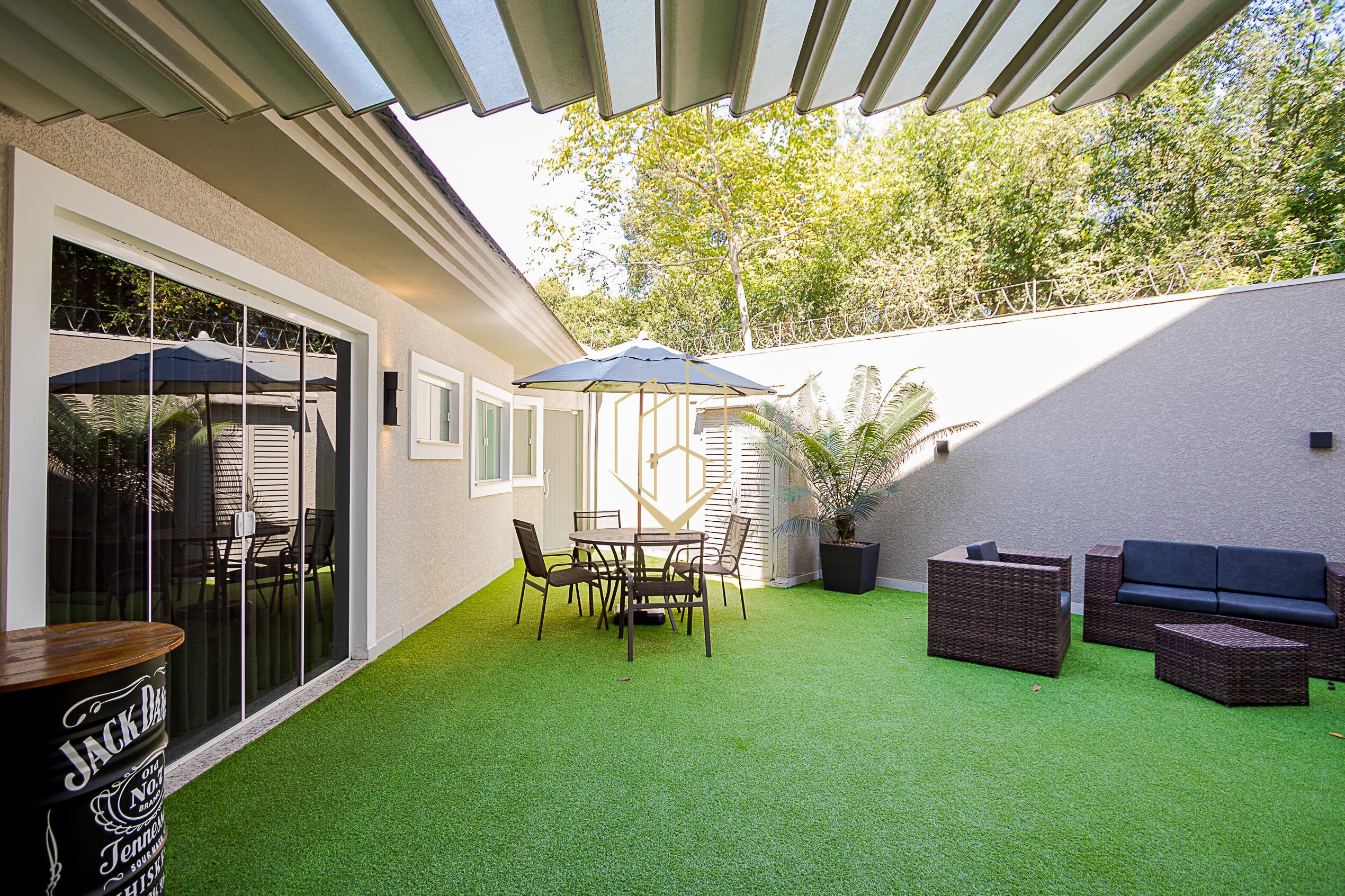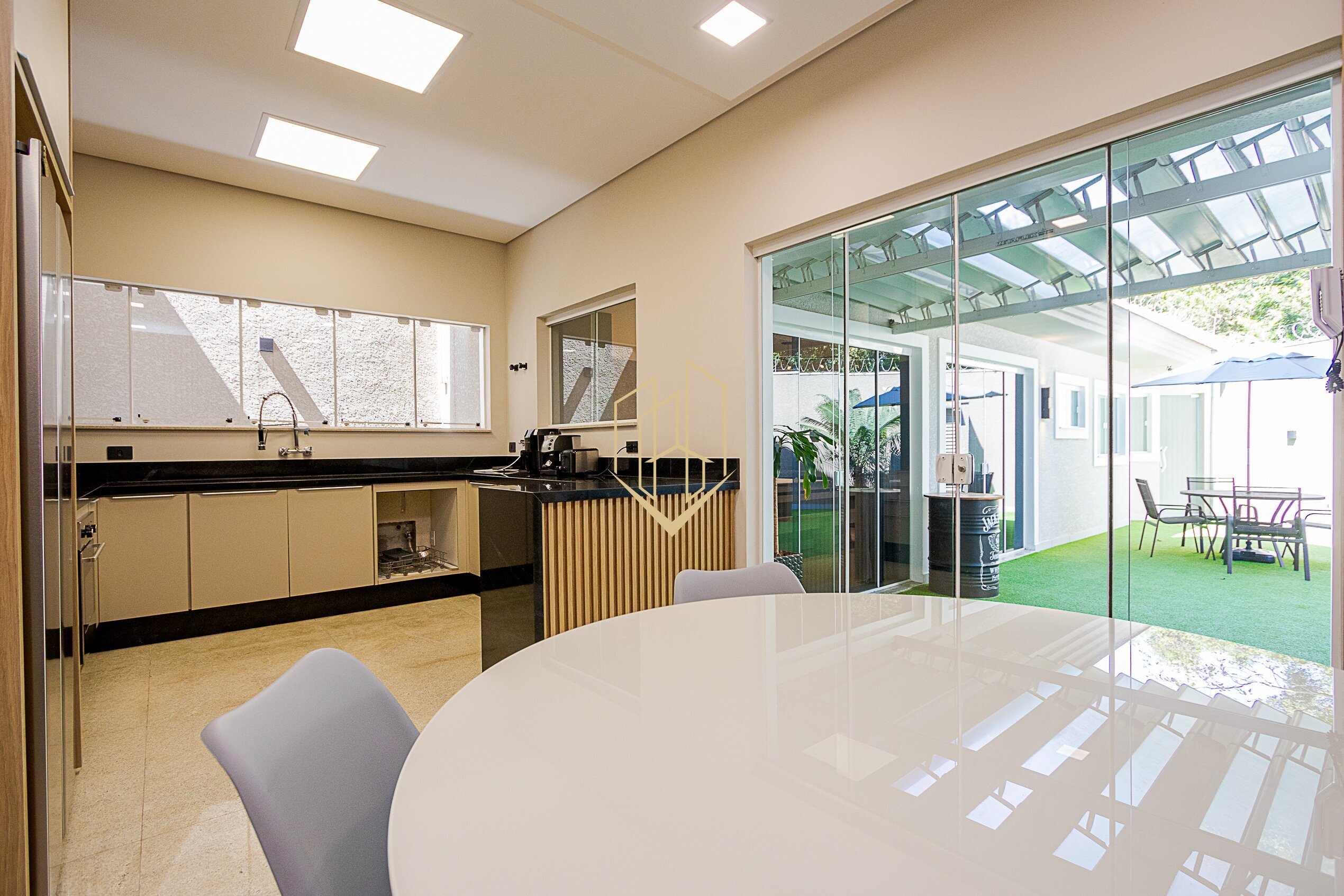 No piso térreo a sala de jantar com pé direito duplo dá acesso direto a área externa, a cozinha é toda planejada e o espaço gourmet com churrasqueira a carvão para você desfrutar de momentos especiais em família e com os amigos. Conta ainda com uma sauna a vapor, banheiro e área de serviço ampla com depósito.