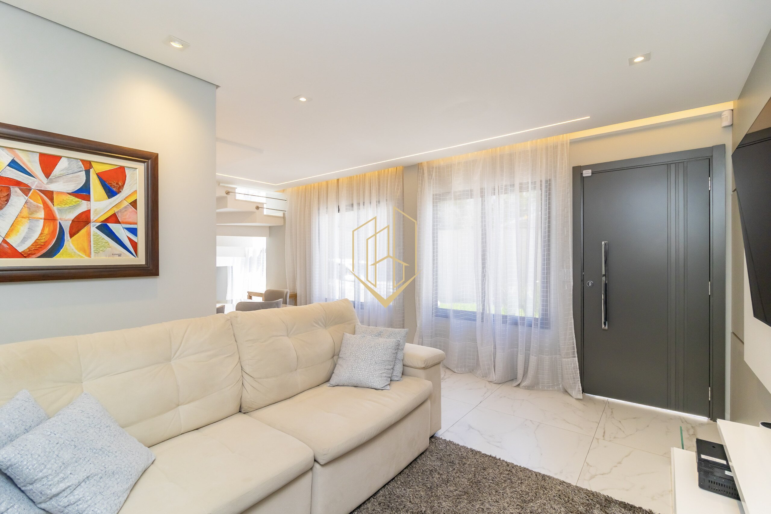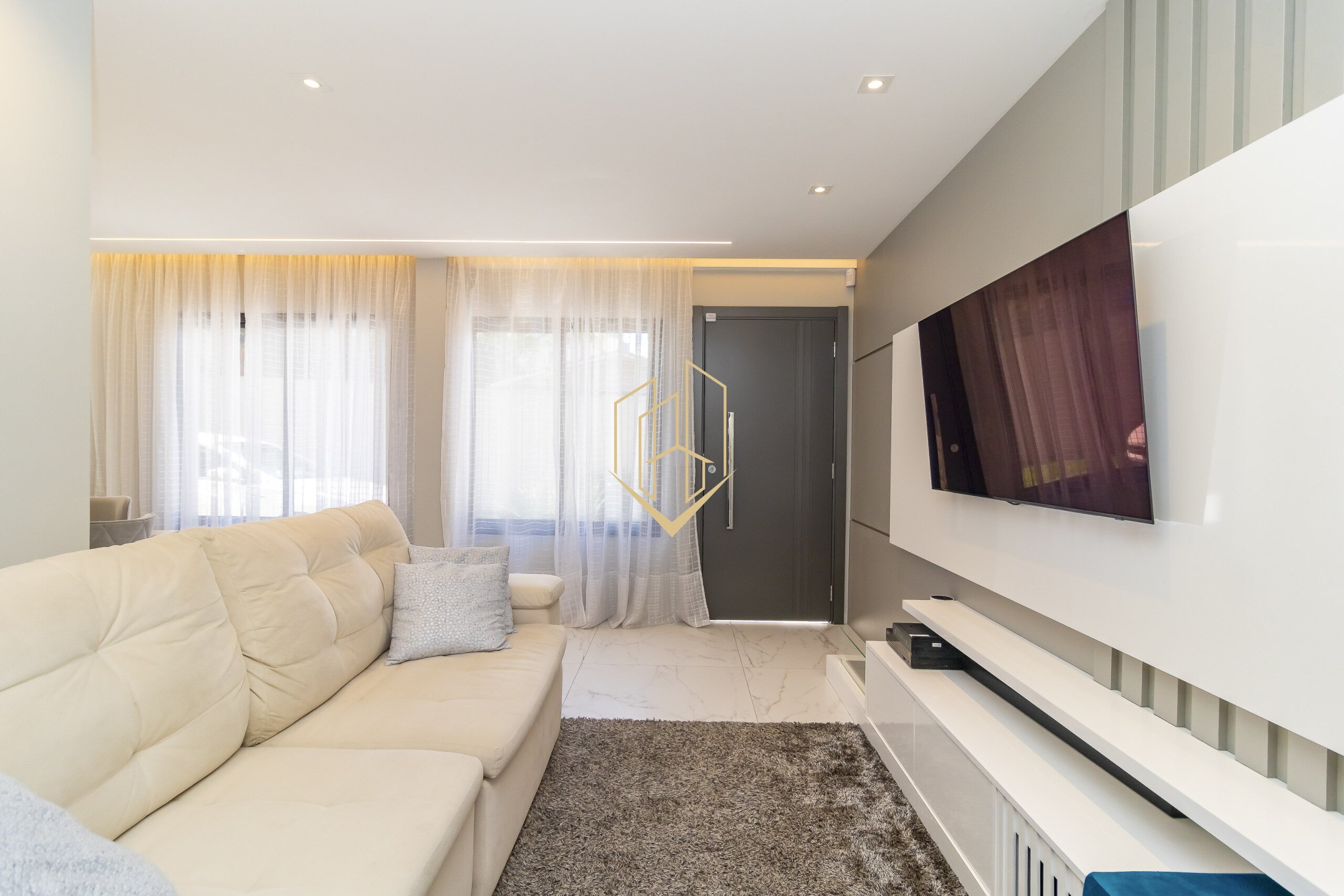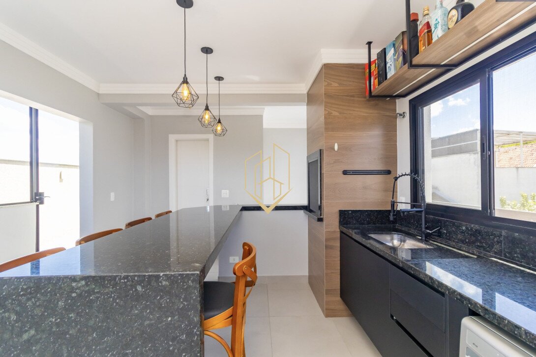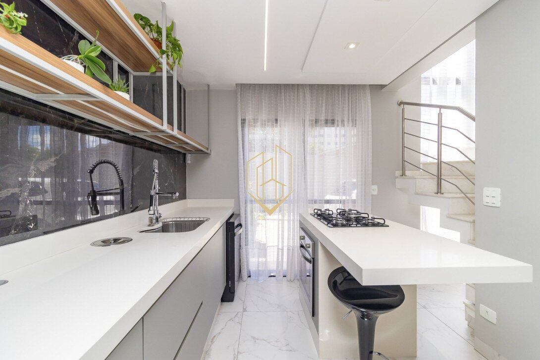 Contendo 174,47 m² de área privativa, distribuídos em três pavimentos, face norte com ótima insolação e ventilação natural, móveis planejados na cozinha e suíte, piso porcalenato na sala, cozinha, área de serviço e espaço gourmet, madeira maciça nos dormitórios, teto rebaixado em gesso com projeto luminotécnico, infra para ar condicionado na sala e nos dormitórios, persianas automatizadas, fachada com tijolinho a vista e pintura em grafiato.