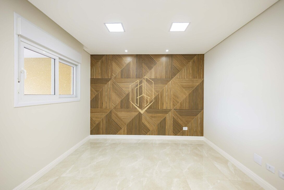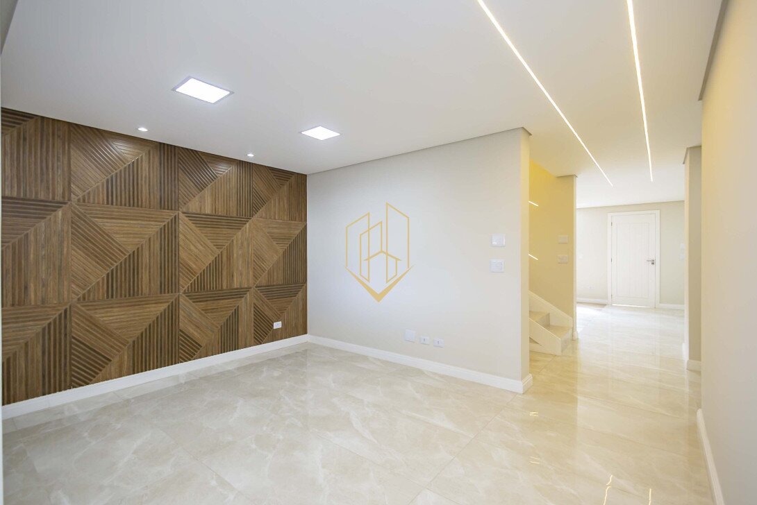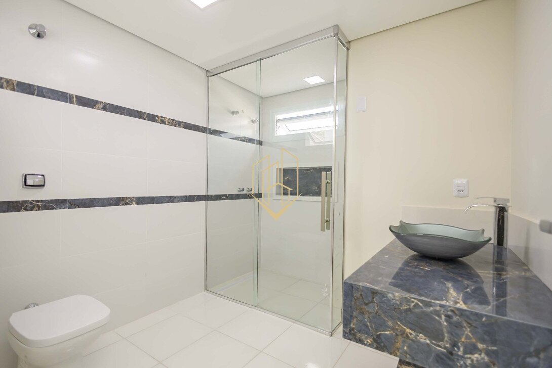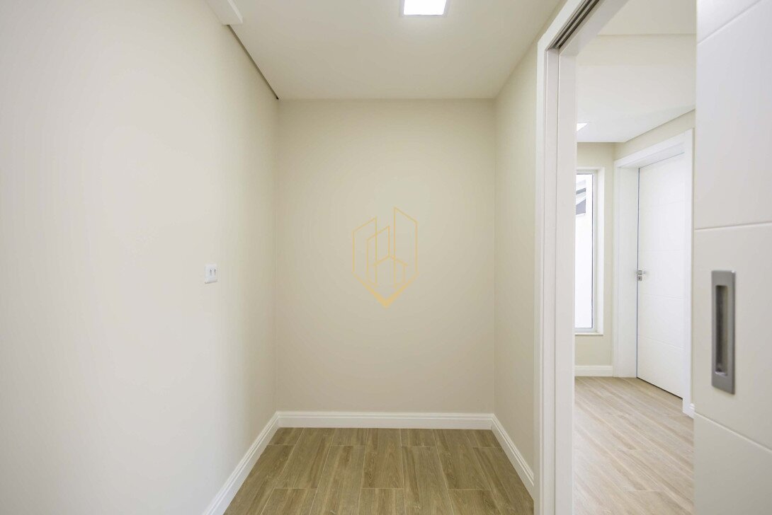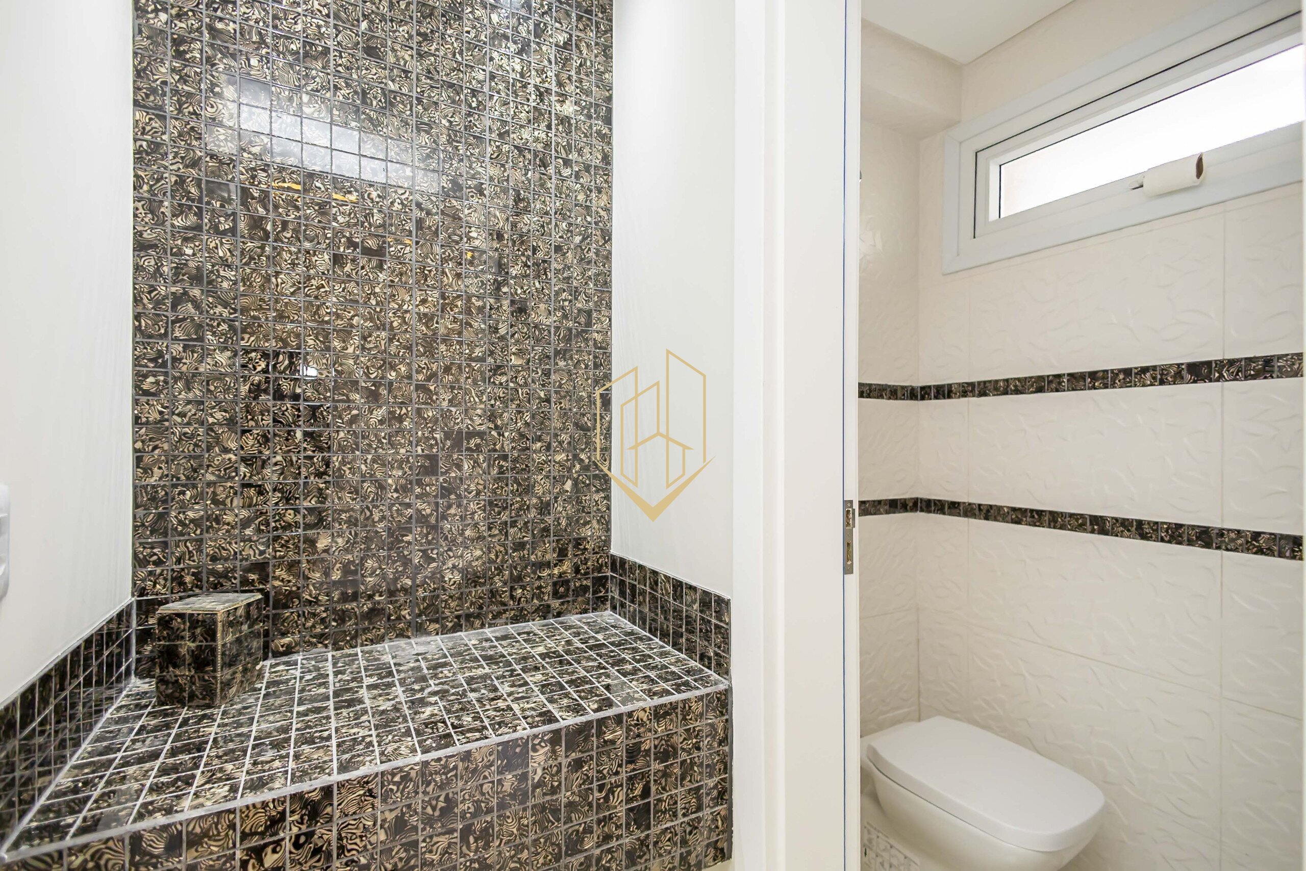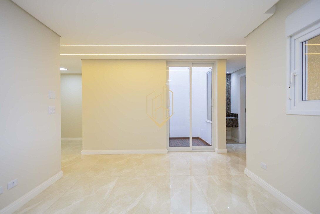 Contendo 223,28 m² de área privativa, distribuídos em três pavimentos, face sul/norte com ótima insolação e ventilação natural, piso porcelanato na sala, cozinha, área de serviço e dormitórios, teto rebaixado em gesso com projeto luminotécnico, infraestrutura para ar condicionado na sala e nos dormitórios, persianas automatizadas, escada em porcelanato, toda área externa com pintura projetada, espaço para instalação de elevador.