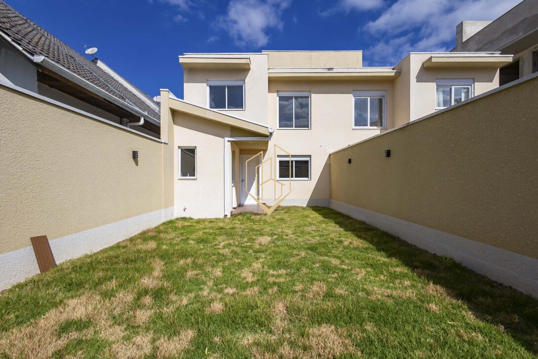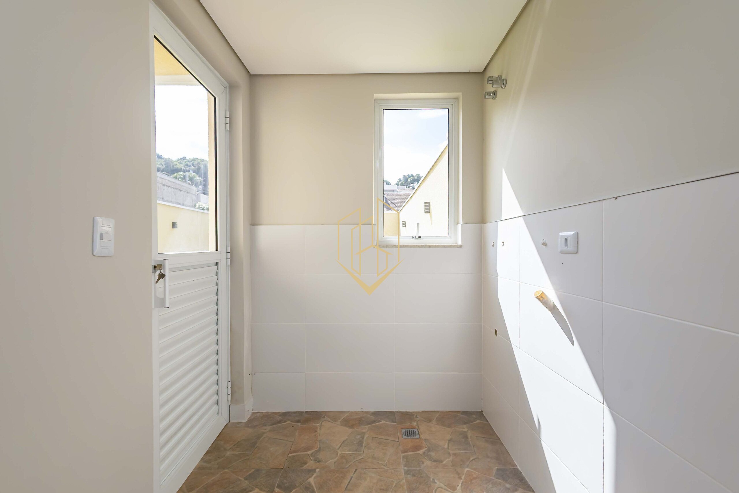 No pavimento térreo temos uma sala de estar, lavabo, sala de jantar integrada com a cozinha, espaço para uma despensa ou escritório, espaço embaixo da escada para adega ou depósito, área de serviço e amplo quintal.