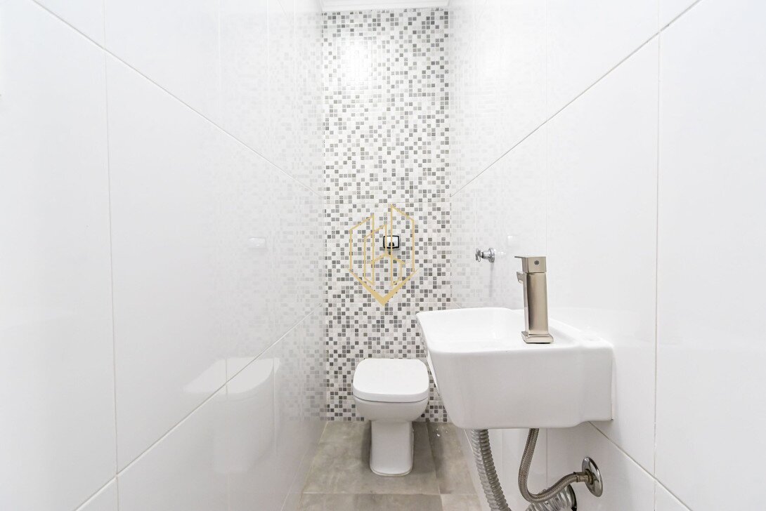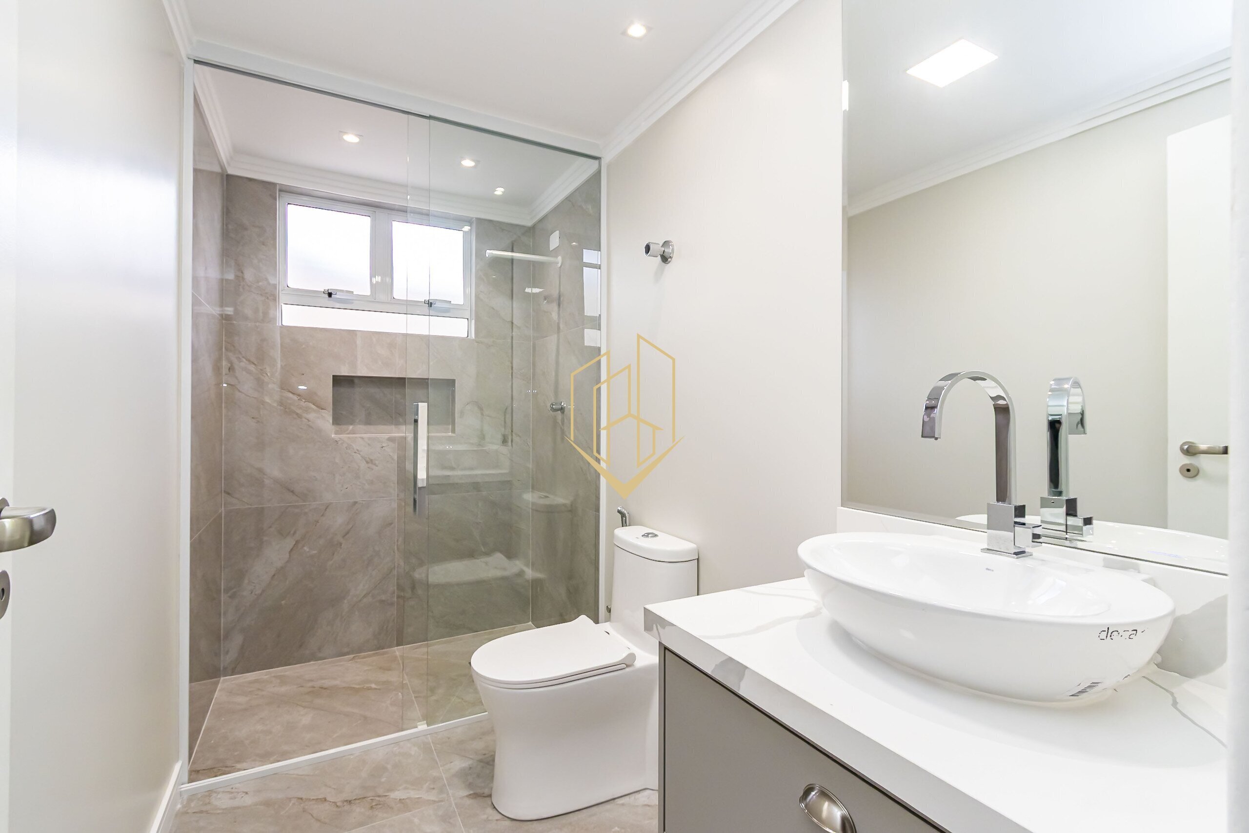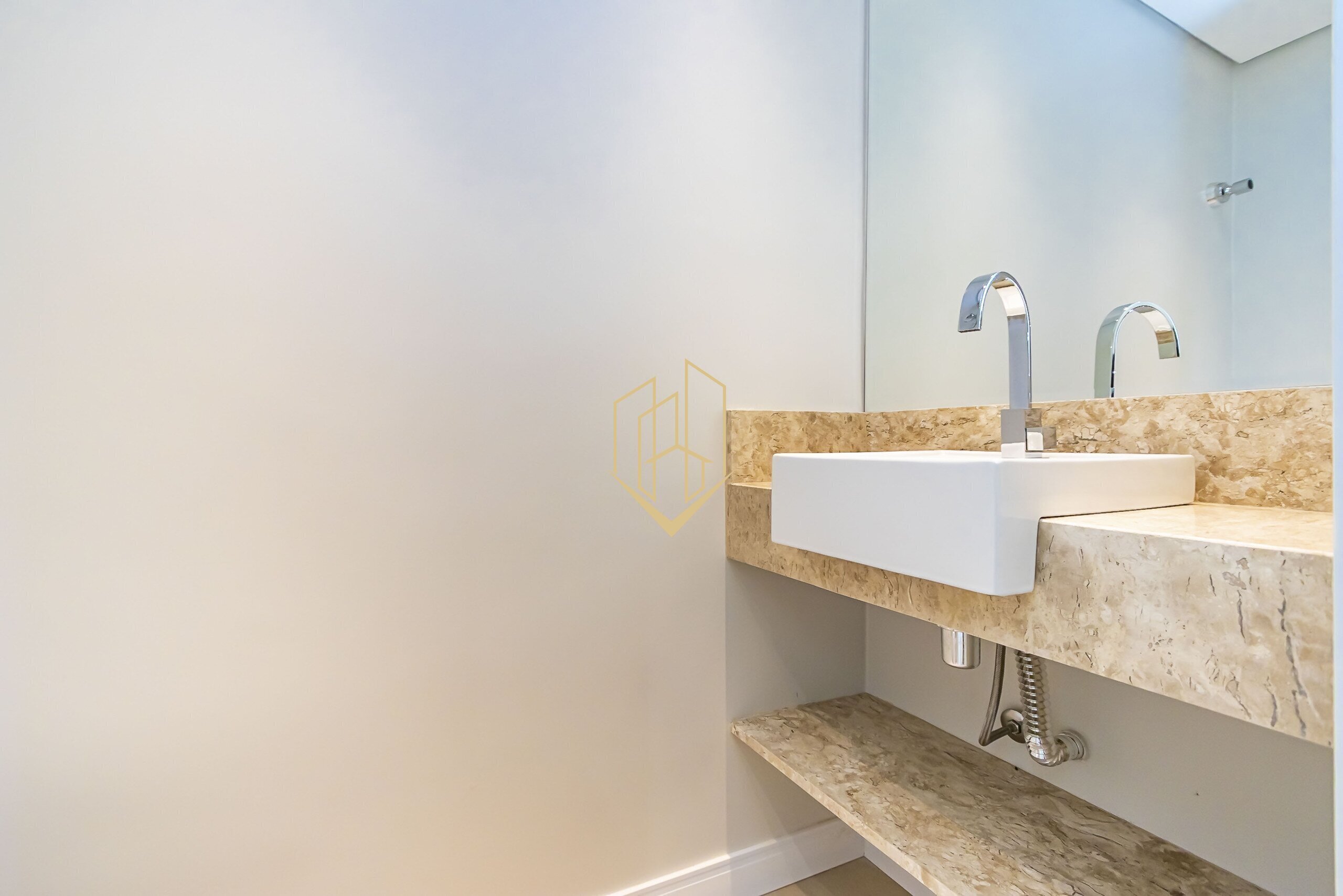 No térreo esta belíssima casa dispõe de sala de estar com lavabo, sala de jantar, cozinha americana com armários sob medida e bancada em silestone com cooktop, 3 quartos sendo uma suíte com hidro e espaço para closet, banheiro social com box de vidro até o teto, área de serviço, churrasqueira e 04 vagas de garagem.