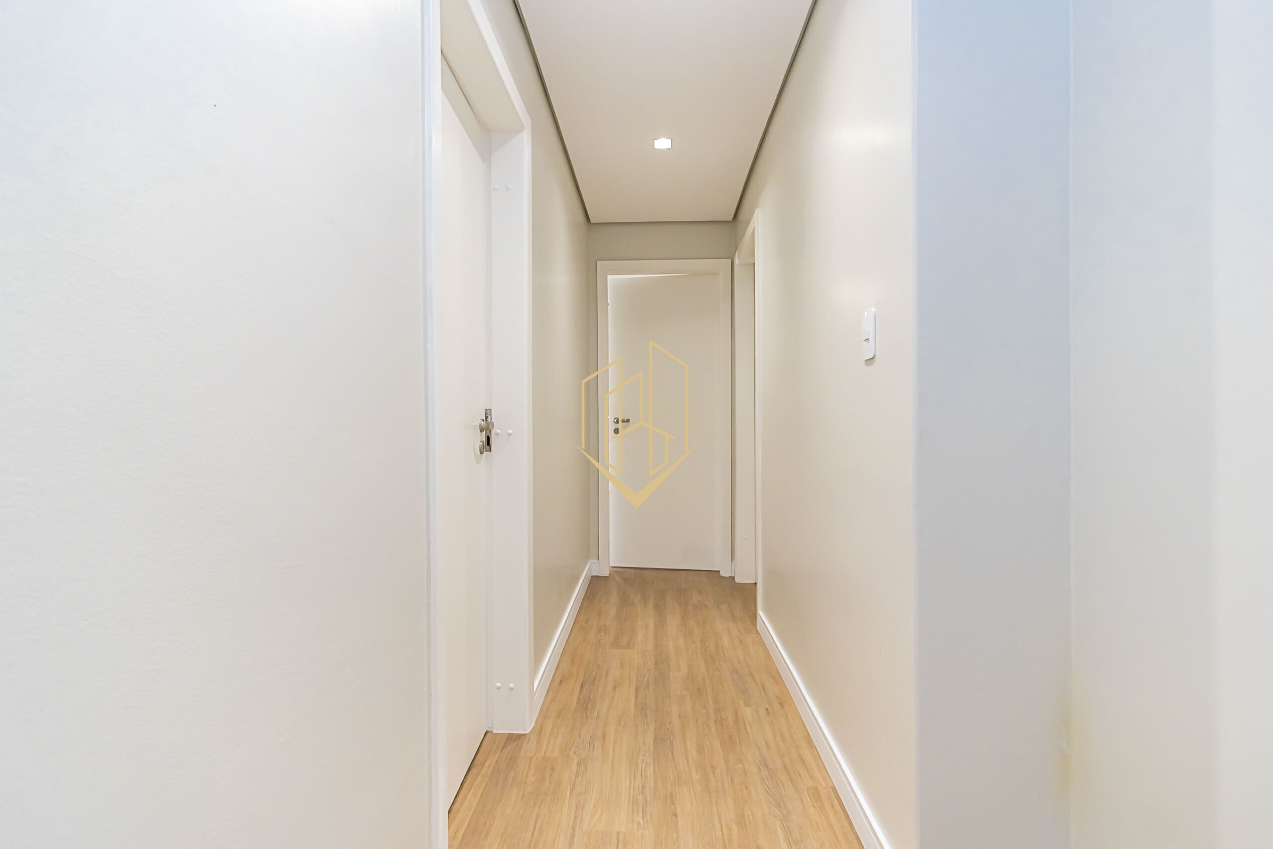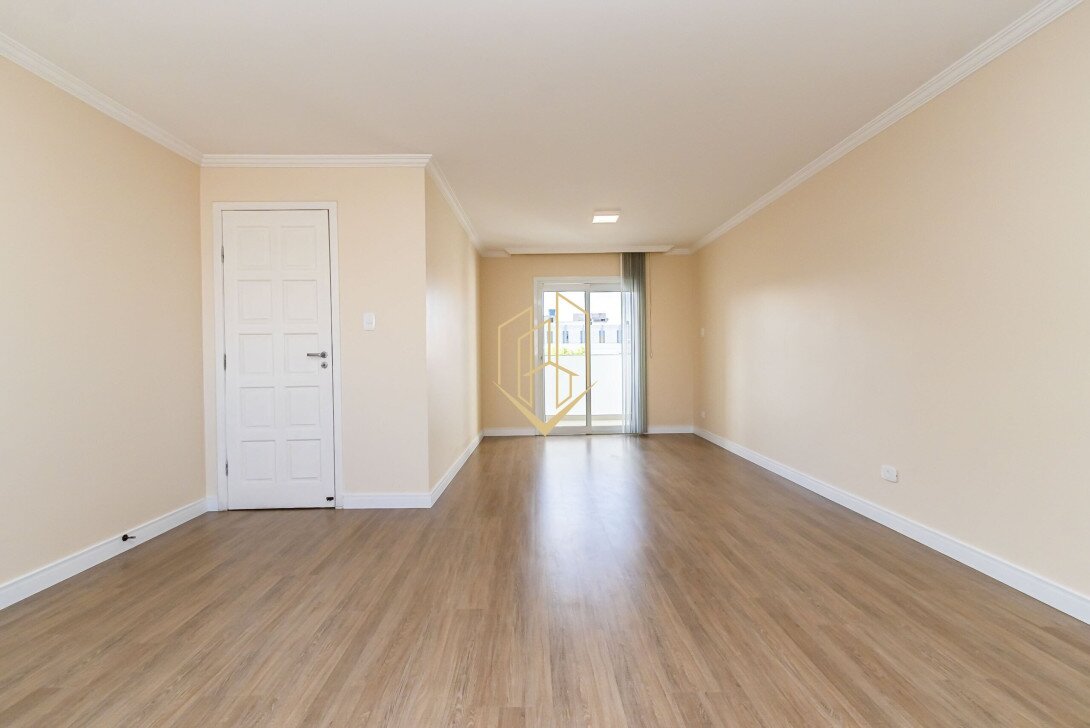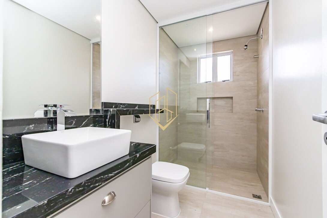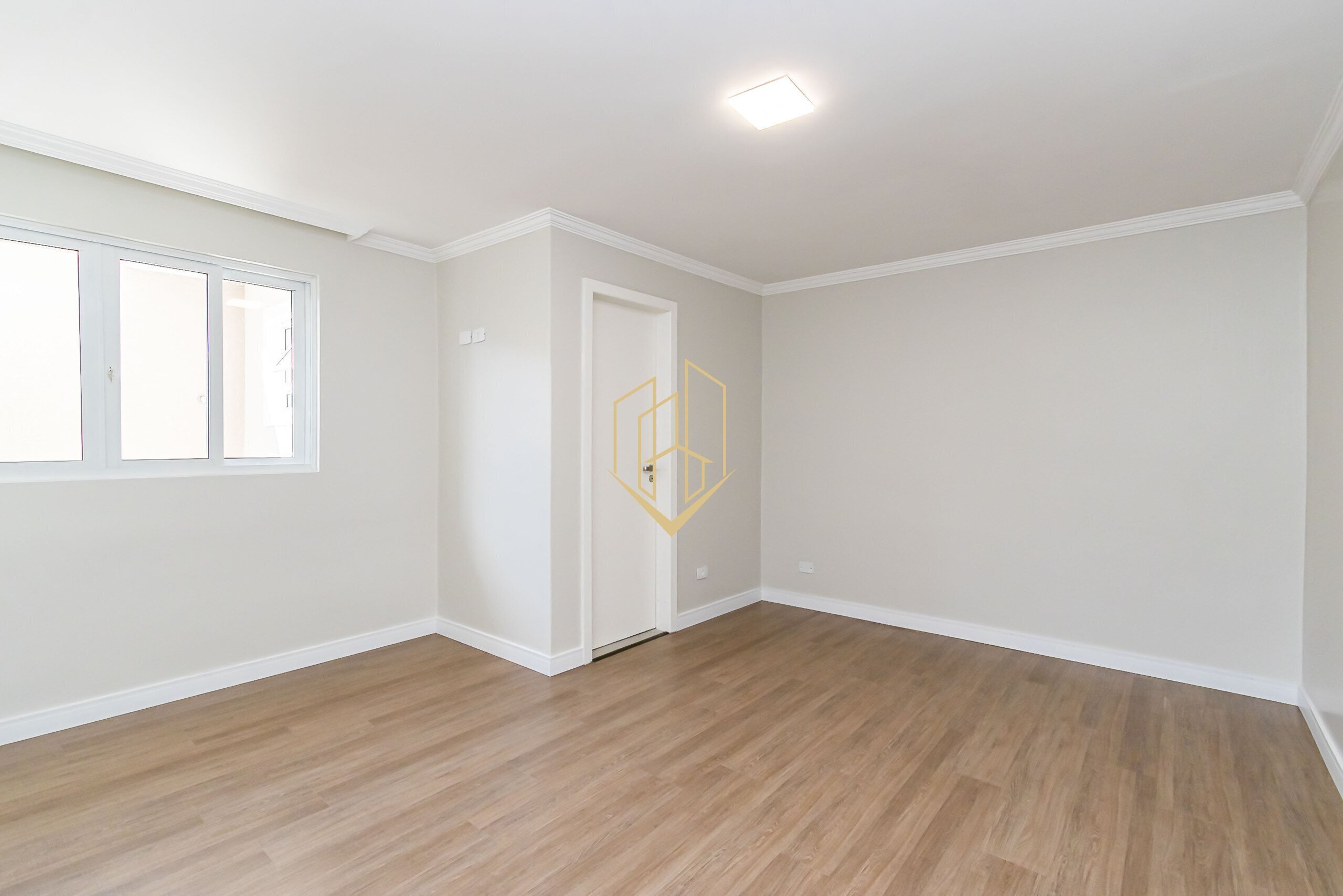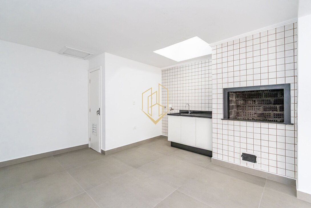 No pavimento superior temos uma sala para dois ambientes com lareira e piso em madeira, e uma ampla suíte com espaço para closet, sacada e banheiro com box até o teto.